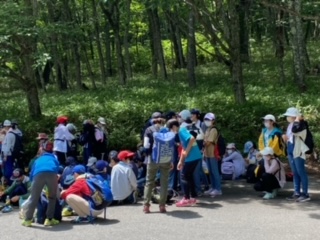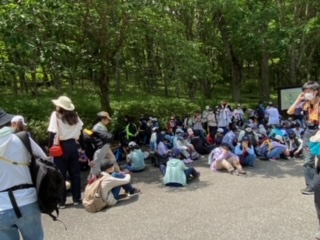 小田代ヶ原の展望台で休憩です。ゴールの赤沼まで、もうひと頑張りです。