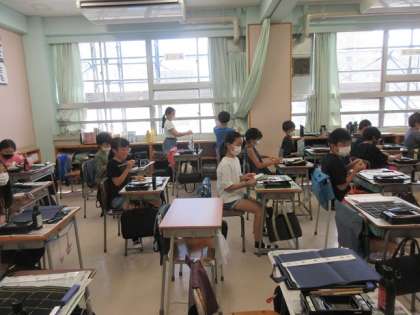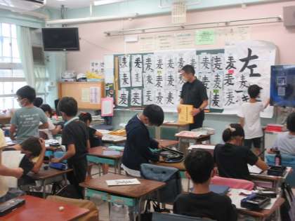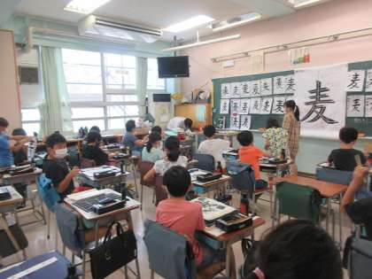 4年1組と2組の書写の時間です。土曜授業の日は書写をしている学級が多いです。