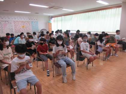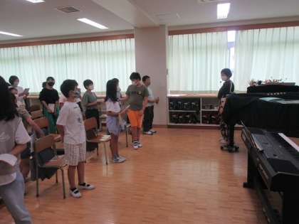 感染症対策の音楽指導として、マスク歌唱をしています。