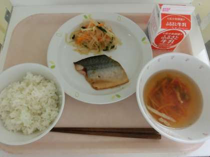 マヨネーズとみその優しい風味が、さばの脂と合わさって、白いご飯が進みます。酸味のきいた和え物と、だしが香るすまし汁は、こってりした鯖の後に食べると、口の中をさっぱりさせてくれます。先生が「さばおかわりする人〜!」とよびかけると、たくさん手が挙がっていました。