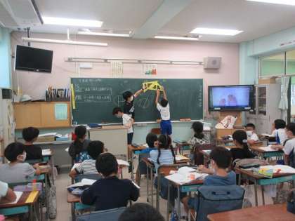 図形の学習に取り組んおり、三角定規などを使って作図をする時の工夫について考えています。