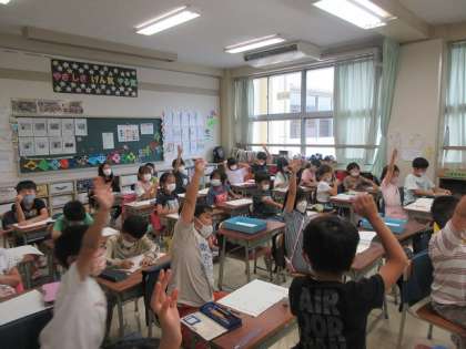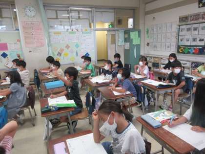 言葉あつめの学習をしています。習った漢字をいれながら考えていました。