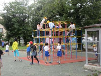 ボールや縄を使ったり、固定施設で遊んだり、元気いっぱいです。