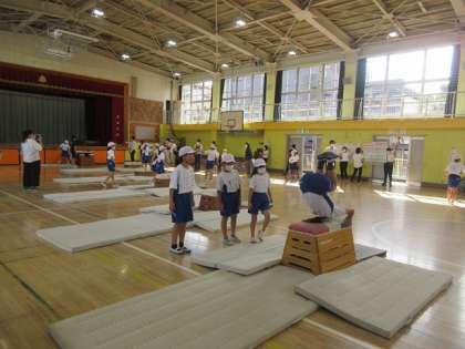 体育の跳び箱の学習でしたが、準備から、授業。片付けまで子ども達はきびきびと動き気持ちのよい授業でした。