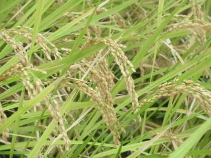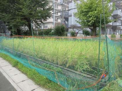 校庭の東南にある水田ですが、春に植えた稲が育ち、収穫の時を待っているようです。