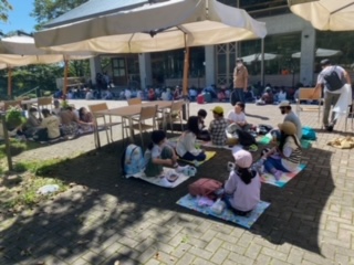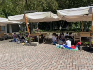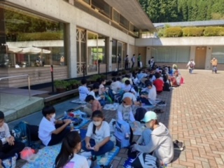 1日目の昼食は自宅から持って来たお弁当です。青空の下で食べるお弁当は美味しいですね。