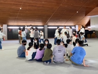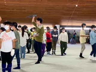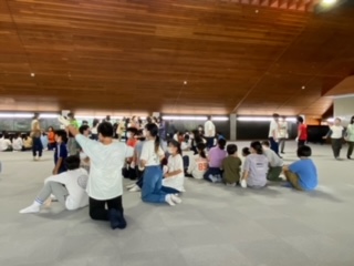 ビレッジ内の村の会堂という大きな広間で室内レクをしました。ジェスチャーでコミュケーションをとりながら仲間探しです。