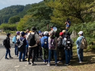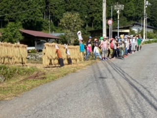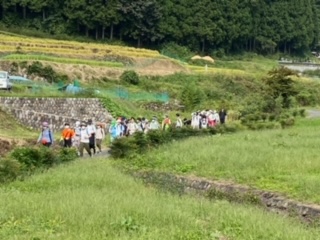 ビレッジの前を流れている桜川の両側にある遊歩道を歩いています。よく実った稲やブルーベリーの木がたくさん見られます。