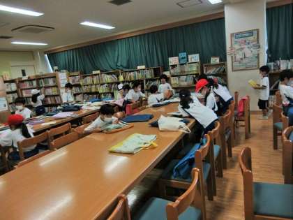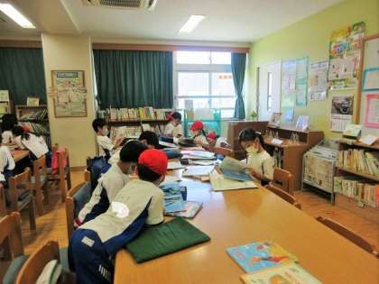 週に一時間ですが、図書室で本を読んだり、借りたりすることのできる時間です。