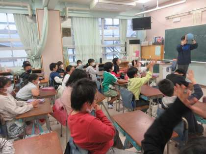 これから始まる、新しいゲームについて、ゲームの仕方やルールなどを学習しています。