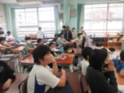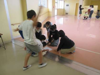 5年1組の体育の時間ですが、雨のため、教室で表現活動をしています。