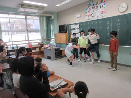 題材に合わせてふりを考え、みんなの前で発表です。短い時間ですが、なかなか上手にできていました。