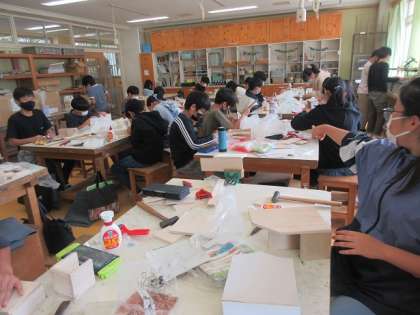 6年1組の図工の時間です。