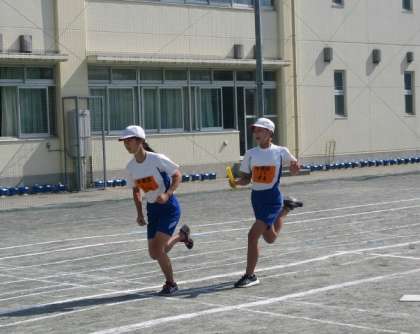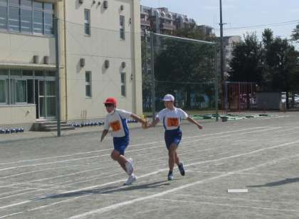 陸上競技場での大会と違い、学校の校庭での競技は、みんなの声援が直接届いてきます。特に最後のリレーは一番の盛り上がりでした。