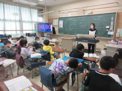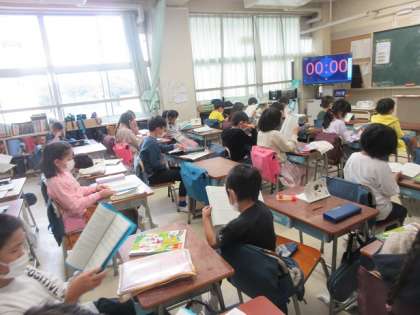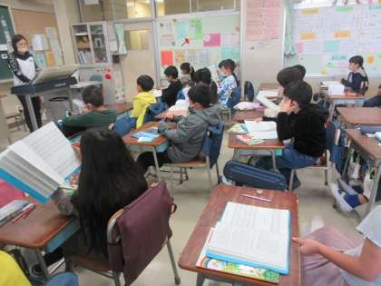 元気な歌声が聞こえてきました。でも、聞きなれない感じの曲です。教室に入ってみると学芸会の台本を見ながら、歌っていました。劇の挿入歌を練習していました。