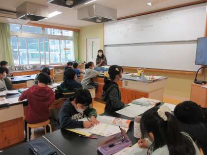 5年3組の家庭科の時間です。