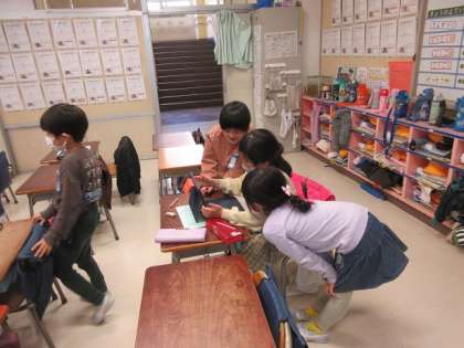 係ごとに集まり、どんな仕事をしようかと相談中です。