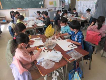 1年2組の図工の時間です。