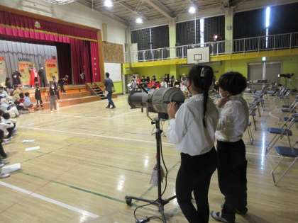 照明担当の児童も真剣です。