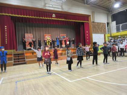 衣装を身に付けると、役になり切ることができるようで、みんな楽しく取り組んでいます。2年生は縦割り鑑賞に4年生が見てくれました。