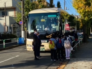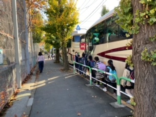 晴天のもと、4年生は8:00に社会科見学へと出発しました。