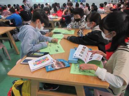 見学から戻ってくるとしおりを開き、見学してきたことをメモに作成しています。