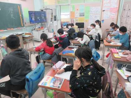 江戸から明治にかけて、今の東京にあたる江戸がどのように変わって来たのかについて調べています。初めて聞く言葉が多いので、熱心にノートにまとめています。