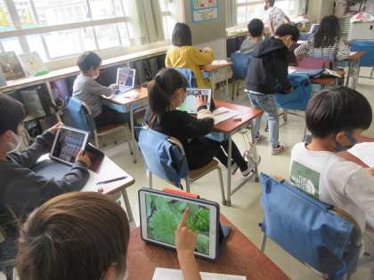 小松菜の成長の様子をタブレットで撮影してきたようです。