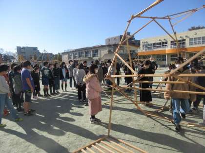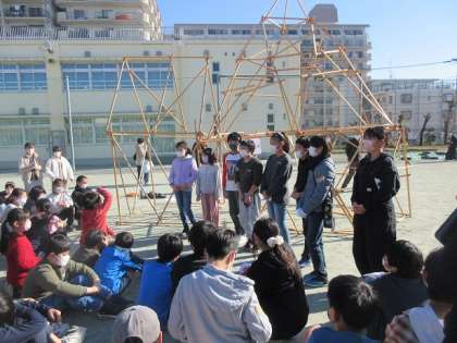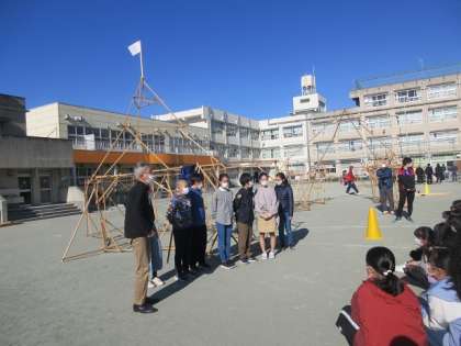 完成後、校庭に5年生が見学に来ました。