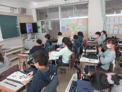 4年3組の書写の時間です。