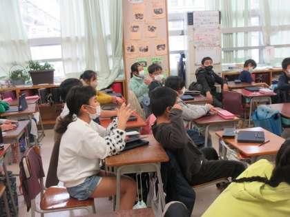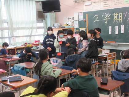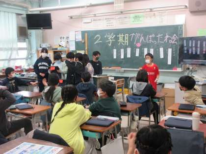 4年2組では2学期を振り返り、友だちの頑張りに目を向け、互いに認め合い、褒め合う会が進められていました。