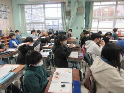 土曜日の2組と同じ題材を扱っていますが、クラスが変わると出てくる意見や考え方が違います。