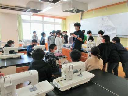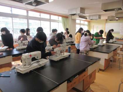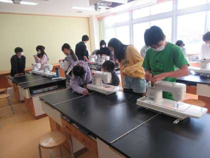 ミシンを使った裁縫実習が始まるようです。今日は下糸をとることが課題です。