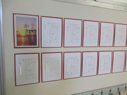 1年生の書初めは、鉛筆で書く、硬筆の書写作品です。