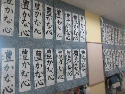一文字目の「豊」の大きさがうまくいかないと最後の「心」がうまく納まらなくなります。縦画と横画のバランスがポイントの一つです。
