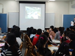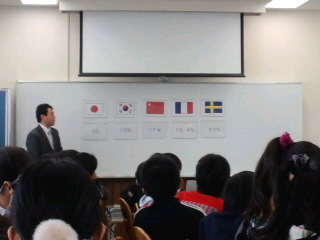 税金のしくみや種類など様々なことを、クイズを交えたり、映像や絵、グラフを見せたりしながら分かり易く説明していただきました。