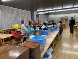 開室式が終わり、食事係は夕食の準備にかかります。