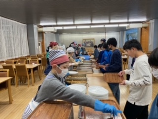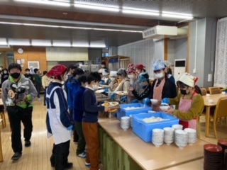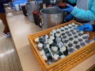 ご飯とおかずの朝食です。カレーよりも盛り付け担当が増えました。今朝は川場ヨーグルトも付いています。