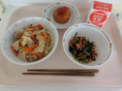 今日は北海道の郷土料理、いももちを給食用にアレンジして作りました。