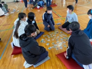 川場かるたを使っての、かるた大会です。一枚一枚に一喜一憂です。
