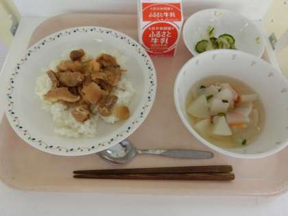 ルーローハンは、豚肉の脂を適度に落とすため下ゆで後に煮込んだり、具材がお肉だけにならないようにたまねぎやたけのこなども入れたりと工夫しました。仕上げに五香粉を入れると途端に異国の味わいに。スパイスは味を見て量を調節したものの、子どもたちはこの香りに驚かないかな…と思いましたが、みんな「普段の煮物と違う味がするけど、これもおいしい!」とよく食べていて、ひと安心です。台湾料理好きの先生からも好評でした。