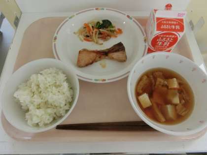 今日の幽庵焼きには、せっかくの旬なのでゆずを使いました。ですが、大量のゆず皮を使うと、どうしても苦みやえぐみまで出てきてしまいます。そのため、今日は愛媛県産のゆず果汁を使って漬けだれを作りました。子どもたちは「今日のお魚おいしい!」「全部食べたよ」とよく食べていました。
