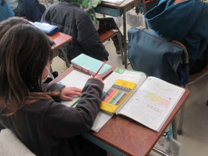 教科書をよく見て、ノートに書きます。