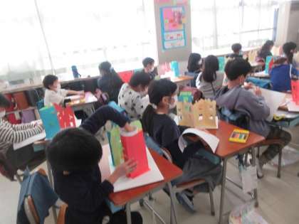 2年3組の図工の時間です。