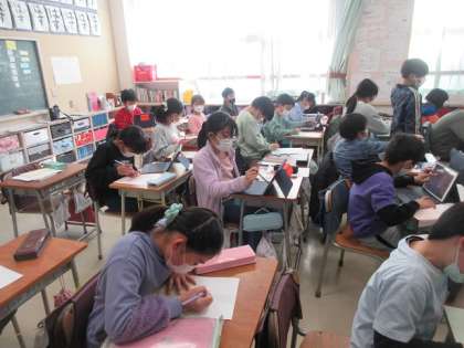 教科書の説明文を、ロイロノートを使って整理してきた要旨を、文書として書き出しています。