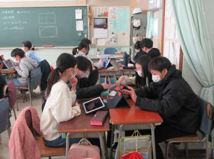 6年2組では、卒業制作の作品のテーマについて相談をしていました。