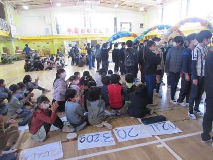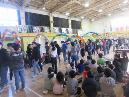 3部構成に分かれての会です。最初に体育館で迎えてくれたのは、2・4年生でした。