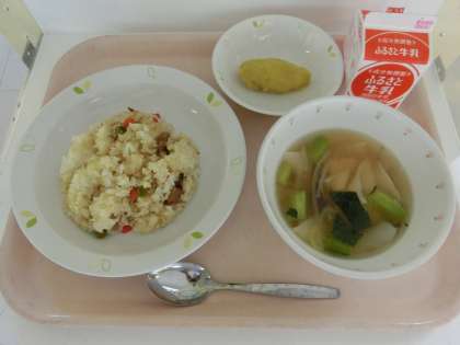 お菓子やパンをきれいに焼くためにぬる卵をドリュールというそうです。千歳台小でもスイートポテトには卵をぬって焼いていたのですが、卵料理と違って卵をきれいに使い切れないことや、卵アレルギーの児童がいることを考え、今日は卵ではなくみりんを使ってみました。みりんはポテトにしみこんでしまって焼き色は今ひとつだったので、また別の方法も試してみたいです。一方、子どもたちからのスイートポテト人気はこれまでと変わらず、今日もおかわり争奪戦になっていました。