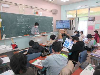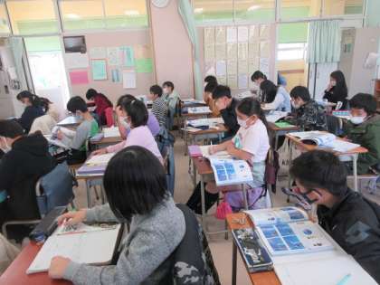 前回に理科室でやった実験結果を確かめながら学習を進めています。