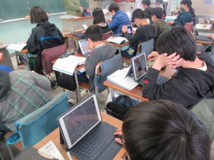 ロイロノートから、友だちの感想を読んでいます。